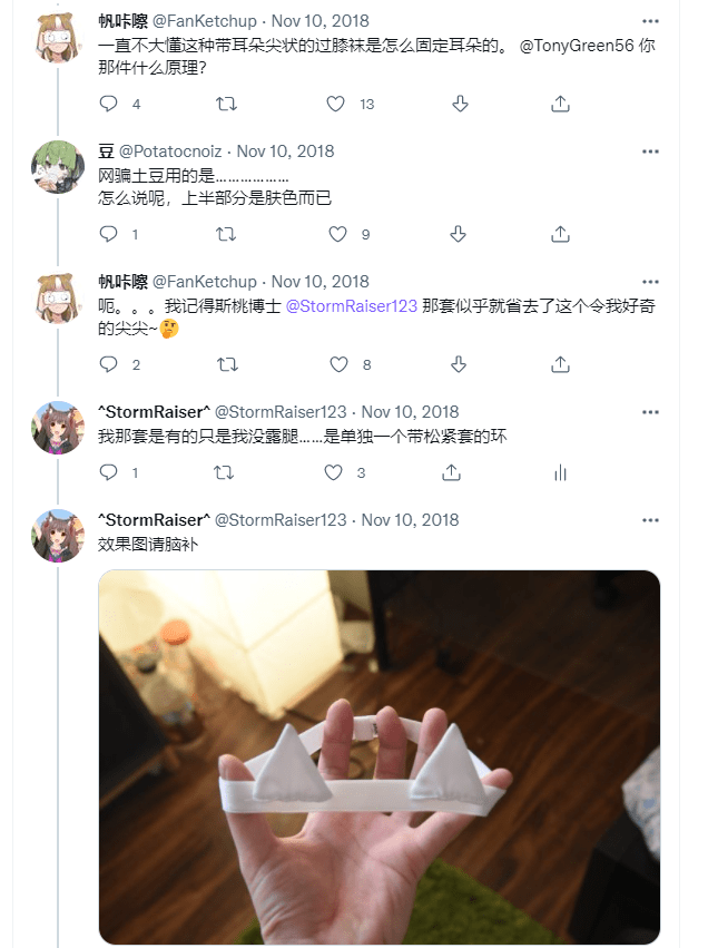 正如大家所知,巧克力和香草的过膝袜上端有一对猫耳形状的尖。某日,著名推友帆老湿对这个设定的具体实现产生了兴趣: